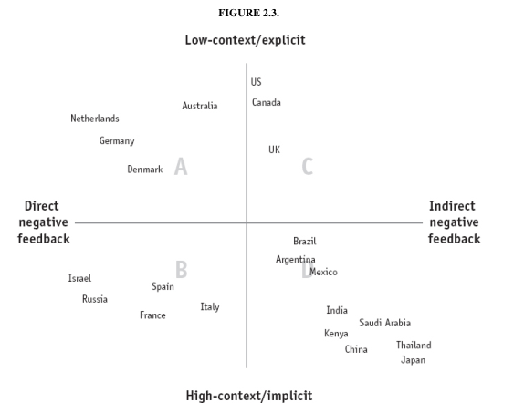 - Indirectness can be overruled by hierarchy (Asia, Russia): indirect towards the boss but direct towards subordinates.